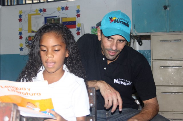 Guatire, 16 de marzo de 2015.- El gobernador de Miranda, Henrique Capriles, encabezó un Gabinete Escolar en la escuela Estado Monagas, ubicada en el sector El Rodeo de Guatire, municipio Zamora, desde donde insistió en la importancia de fortalecer la educación para tener un futuro de oportunidades y progreso.