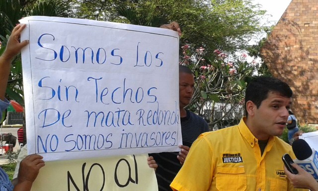 Maracay, 09 de febrero de 2015.- El diputado al Consejo Legislativo del Estado Aragua Rodrigo Campos y grupo de vecinos que ocupan viviendas en el sector de Mata Redonda de Maracay, acudieron a la sede de la Gobernación para solicitar una reunión con la Secretaria General de Gobierno Caryl Berto, para mediar en el problema que existe entre los ocupantes de estas viviendas de zona de riesgo.