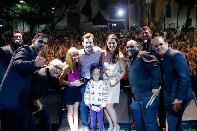 Caracas, 02 de enero de 2015.- El alcalde de Chacao, Ramón Muchacho, en compañía de su familia, compartiócon cientos de vecinos que se dieron cita en la plaza Bolívar del municipio para recibir el año nuevo, en un encuentro que puso de manifiesto la convivencia, la unión y los mejores deseos para iniciar el 2015.