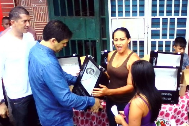 Caracas, 29 de diciembre de 2014.- El alcalde del municipio Sucre, Carlos Ocariz, visitó la comunidad de Vista Hermosa, donde entregó a los vecinos reflectores de iluminación nocturna, y otorgó más de 96 mil bolívares para la ejecución de micro proyectos en Caucagüita y Maca.