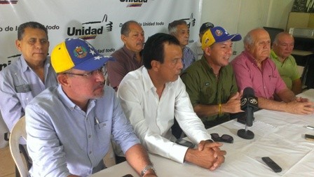 San Félix, 05 de agosto de 2014.- Wilson Castro, miembro de la Mesa de la Unidad Democrática (MUD) Bolívar, acompañado de Freddy Valera, secretario ejecutivo de la MUD Bolívar; Noel Vargas, diputado al Consejo Legislativo del estado Bolívar (CLEB), y demás representantes de los partidos políticos que forman parte de la Unidad, expresó su preocupación por la inseguridad que toma más fuerza en Venezuela.
