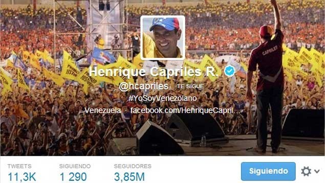 Caracas, 24 de febrero de 2014.- Este domingo, el gobernador de Miranda, Henrique Capriles, envió un mensaje a la GNB a través de su cuenta en Twitter. "Nicolás los está hundiendo en el sentimiento popular! Está volviendo leña GNB".