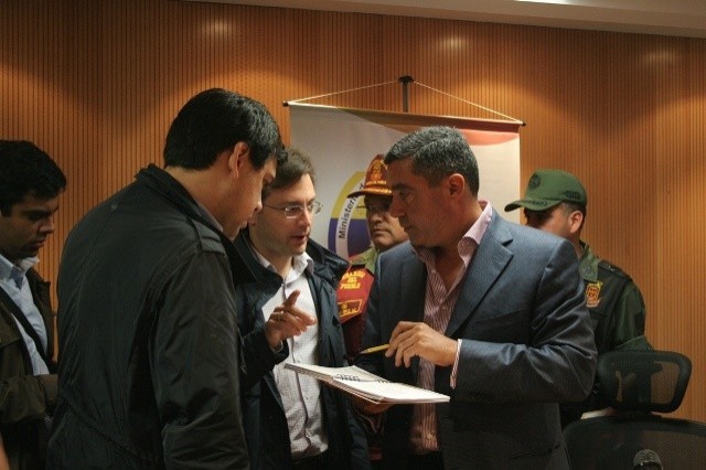 Caracas, 27 de enero de 2014.- A la salida de la reunión de seguridad sostenida con el Ministro de Interior, Justicia y Paz, Miguel Rodríguez Torres, el alcalde de Chacao, Ramón Muchacho manifestó que se obtuvo como compromiso del ministerio la entrega de tres vehículos y diez motos para el Plan de Patrullaje Inteligente en el municipio.