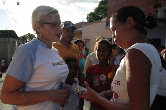 Guatire, 10 de septiembre de 2015.- La candidata de la Unidad por el circuito 4 del estado Miranda, Adriana D’Elia, realizó un recorrido casa por casa en el sector El Rodeo de Guatire, donde conversó con los vecinos de la comunidad y planteó mecanismo para solucionar los problemas que afectan su día a día. “La grave crisis económica deterioró nuestra calidad de vida y sí podemos cambiar esto el 6 de diciembre (6D), votando por un cambio”.