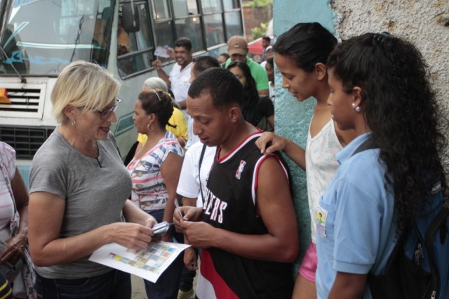 La Dolorita, 23 de octubre de 2015.- La candidata parlamentaria por el circuito 4 del estado Miranda, Adriana D’Elia, durante una caminata por el sector El Chorrito de La Dolorita cuestionó que el gobierno de Nicolás Maduro no tenga dentro de sus prioridades mejorar las condiciones de vida del pueblo. “Es inaceptable que Maduro y sus candidatos ponga por encima del bienestar de los venezolanos sus propios intereses. A este gobierno lo único que les importa es seguir engañando al pueblo para mantenerse en el poder”, sentenció.