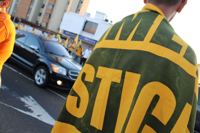 El diputado a la Asamblea Nacional (AN) Juan Pablo Guanipa, acompañó a decenas de personas que llegaron de los municipios más alejados de la capital zuliana como Francisco Javier Pulgar, Colón y Catatumbo. Iniciaron la jornada exhibiendo pancartas, vociferando consignas y entregando volantes a los conductores y transeúntes invitándolos a formar parte de la actividad.