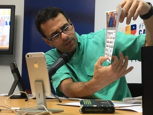 Caracas, 11 de octubre de 2017.- El gobernador de Miranda, Henrique Capriles, denunció que a cinco días de las elecciones regionales, el Consejo Nacional Electoral (CNE) reubicó 205 centros en 15 estados del país, lo que afecta a unos 312 mil electores, por lo que exhortó al pueblo venezolano chequearse con su cédula de identidad en el registro electoral o en la página web y redes sociales de la Unidad.